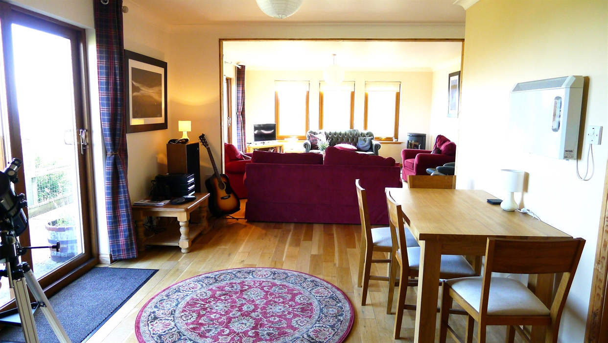 Ellister Lodge is a modern, elevated house sleeping 8, with superb views over Loch Indaal to the Oa and Northern Ireland. With consistent 5* ratings on AirBnB and TripAdvisor, Ellister Lodge sits within the Easter Ellister estate on the Rinns of Islay.No r