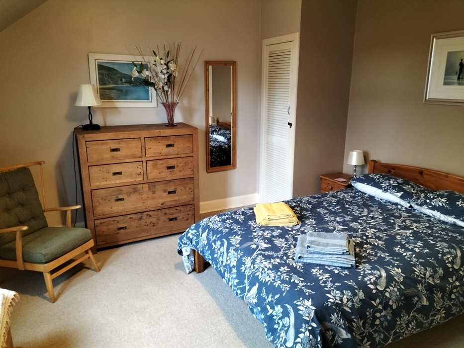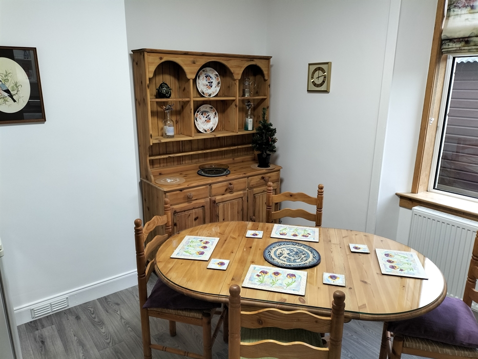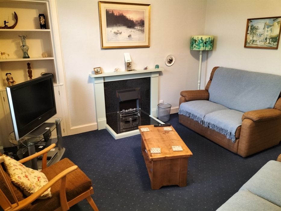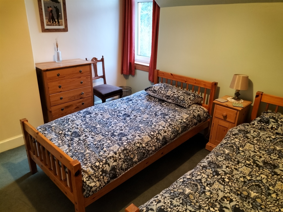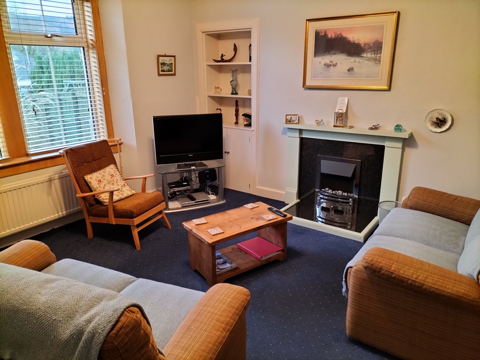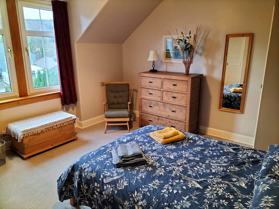 The accommodation offered is on two levels, owner maintained and comprises of a lounge, dining room and kitchen on the lower floor and a double and twin bedroom and bathroom/walk in shower/toilet on the upper floor. The back door/ front door and windows are double glazed and have security locks. The garden to the front of the house overlooks the Church of Scotland (a listed building circa.1884-1888) and the hills beyond. There is off street parking for two cars. A garage offers secure space for bicycles/outdoor equipment and has drying facilities. Gas and electricity is included in the charge. The accommodation is non-smoking and unfortunately we cannot accept pets. The house is only 50 metres from the local food store and the nearest restaurant is 100 metres away.