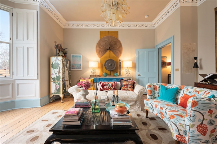 Luxurious sitting room with cosy sofas, velvet chairs and armchairs for total relaxation and a large coffee table to set an informal feast or board game.