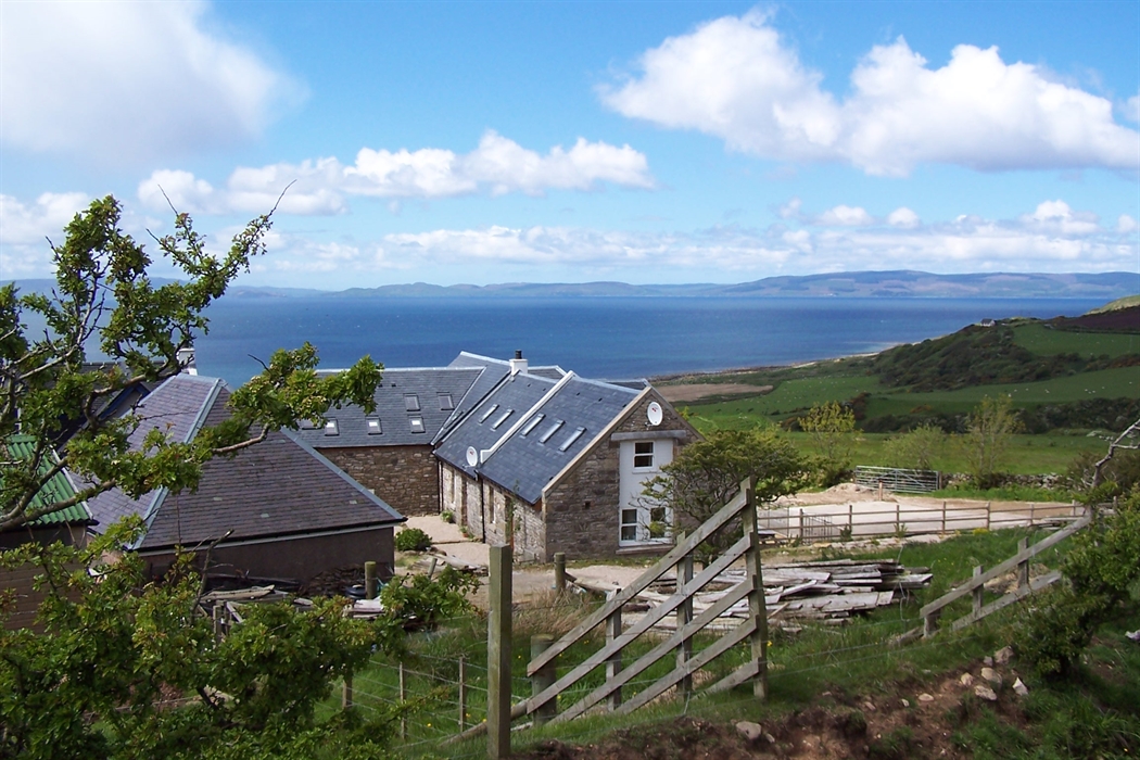 The Hayshed (sleeping four plus one doggie companion), is located on Ivy Cottage Farm, on the upper slopes of the lovely Corriecravie Valley in Arran's south-west corner, overlooking the sea towards Kintyre.