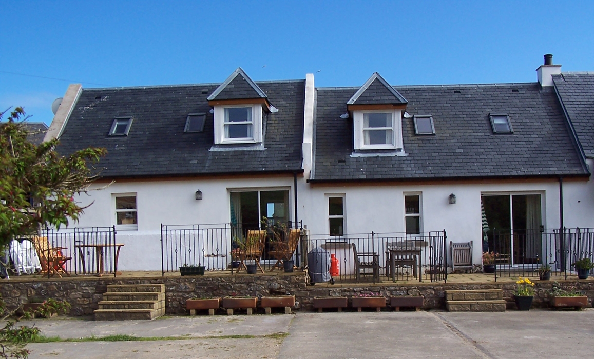 Getting there by railway:- take the Calmac ferry from Ardrossan Harbour station to Brodick. From ferry terminal, take the 322 bus service to Blackwaterfoot via the Southend. Ask the driver to drop you at the stop in Sliddery, from which carry on up the hill out of the village in the same direction as the bus. Our track is on your left, marked by a sign indicating Far Horizons Holiday Cottages, just before the road drops steeply into the Corriecraivie valley.