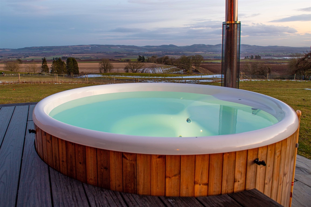 Fettercairn Bothy : Luxurious, five star eco-bothies offering a romantic retreat on the Cateran trail, with private hot tubs, high end-kitchens, and stunning views over the valley.