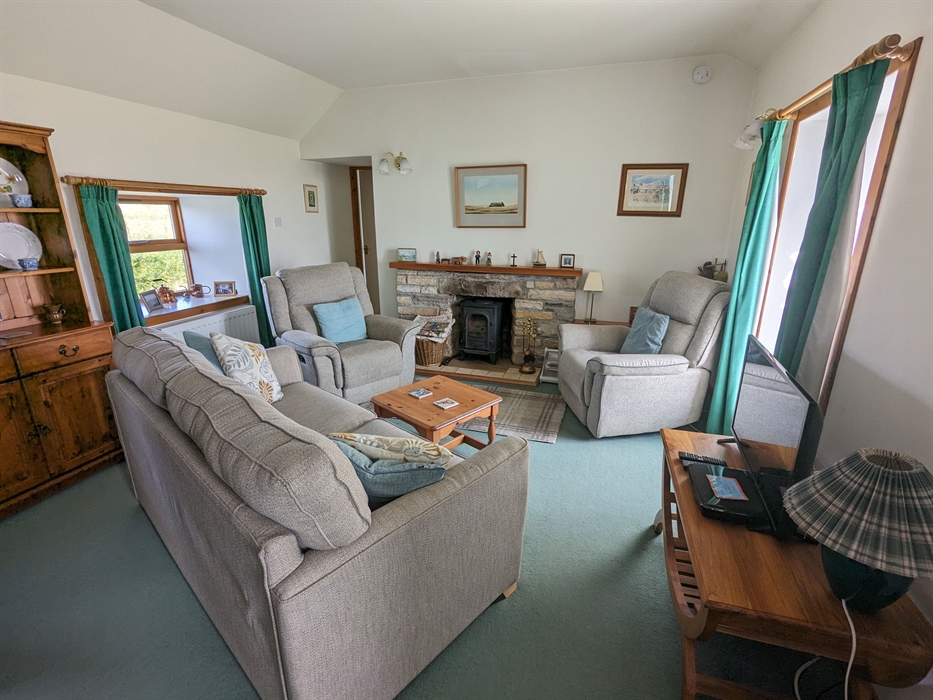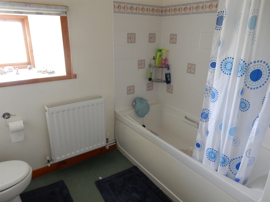 In the interests of green tourism, as promoted by Visit Scotland's Green Tourism Business Scheme, the cottage boasts a number of measures designed to minimise fossil fuel consumption and to improve environmental impact. The most prominent is a small (6 kW) pole mounted wind generator on land well to the back of the cottage which feeds electricity by underground cable to heat and light the cottage. This supplements the mains supply and allows surplus electricity to be fed back into the grid. The cottage is heated by radiators fed by a ground source heat pump. To further reduce the carbon footprint, the insulation in the loft spaces is considerably enhanced and there is a solid fuel stove for extra heating in the living room. All light fittings have low energy light bulbs. Facilities are provided for collection and recycling of waste.
