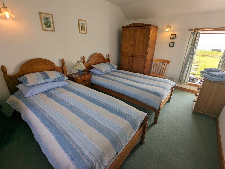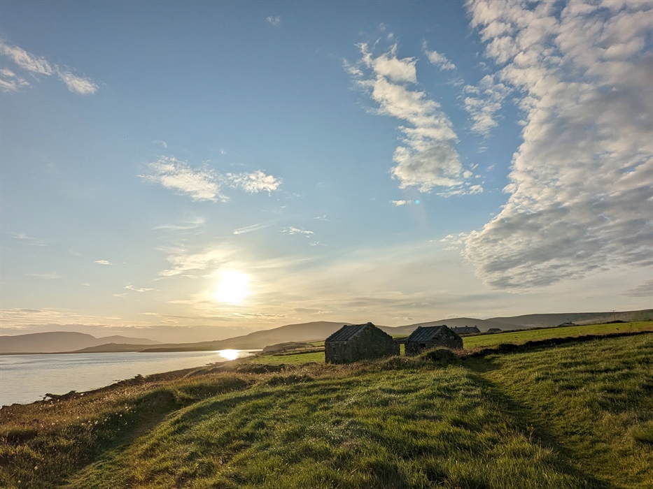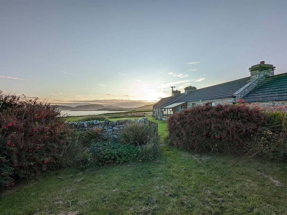The cottage is located about 250 m from the shore and is surrounded by 6 acres of open pasture where dogs can run freely. There is a small walled garden at the east end of the cottage which is suitable for small children to play in. A lovely coastal path to the Earl's Bu starts nearby.