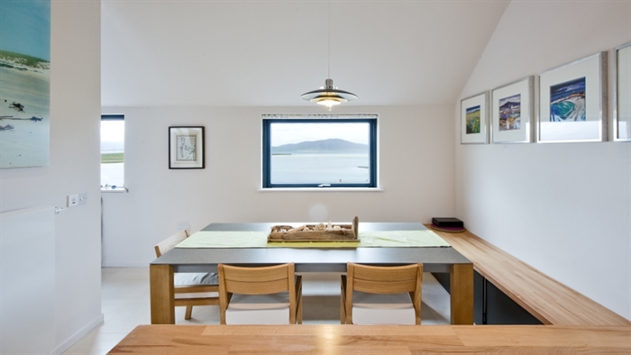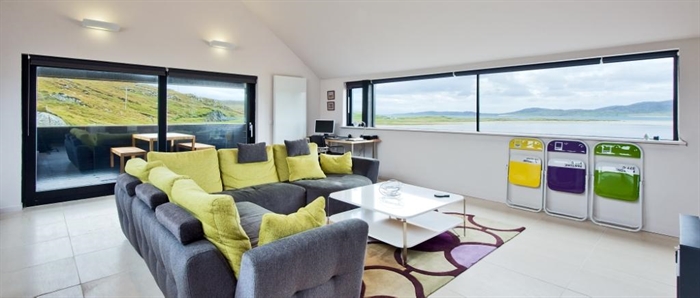 A modern, detached three-bedroom house with breathtaking views over one of the best beaches in the Outer Hebrides. A perfect luxury retreat for either a couple, family, or group of friends.Modern, open-plan living area upstairs Three comfortable bedrooms, including an en-suite master bedroom downstairs. Home cinema and satellite broadband.