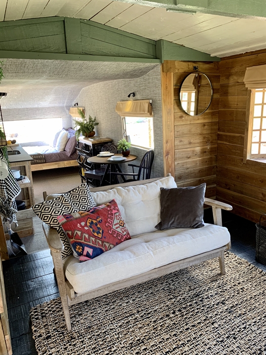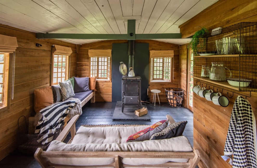 Stay in our very quirky hideaway, the Fishing Hut. A step-up from glamping with stunning interiors, this is the perfect place to embrace off-grid living.