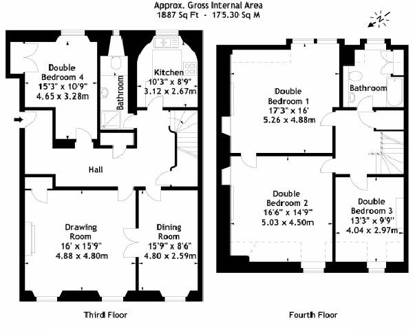 Bedroom 3: large front facing room with a double plus 2 singles or up to 4 single beds.