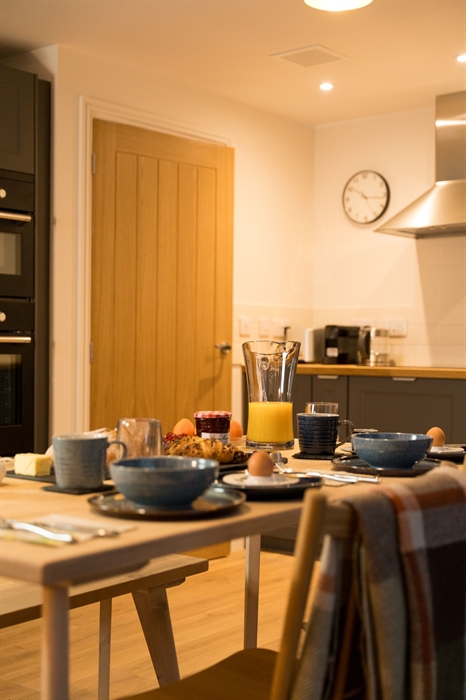 With its open-plan layout, The Home is perfect for socialising after a day of adventures. The stylish kitchen and living space blend comfort and practicality, complete with a wood-burning stove for cosy nights in and a dedicated workspace for those who need to stay connected.