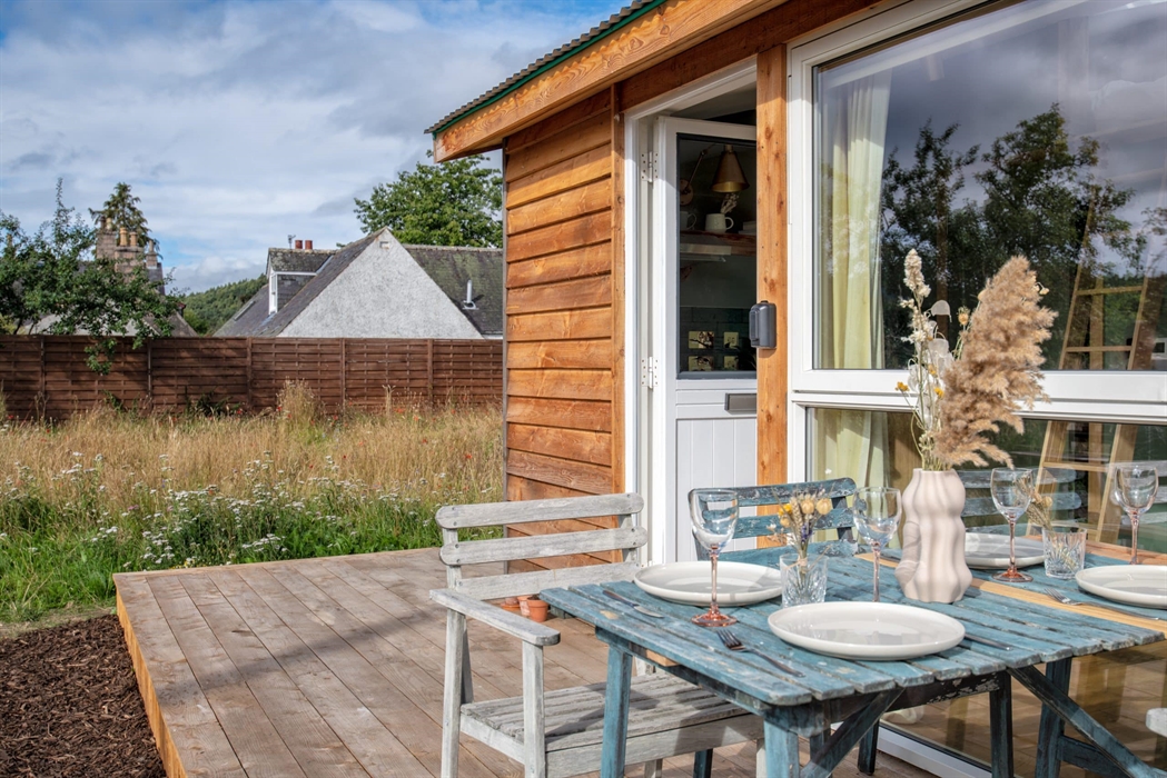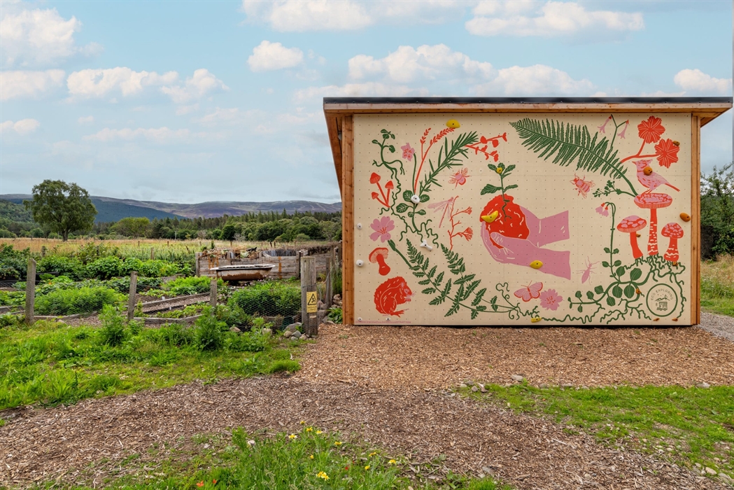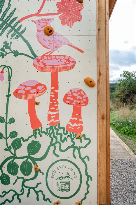 Nestled on the edge of the picturesque Ballater and within the vibrant community of our small steading, the cabin stands as a testament to high-quality, sustainable holiday living. Guests are treated to a unique blend of comfort and adventure, with a beautiful mural and a bouldering wall for added fun. The wildflower garden, teeming with native flora, invites local wildlife, enhancing the cabin’s charm. Ideally located to explore the Cairngorms and Royal Deeside’s treasures, from golfing, hiking and biking to visiting the nearby Balmoral Estates and historic Braemar, this cabin offers easy access to a wealth of outdoor activities. With cosy insulation, luxury amenities, and a commitment to eco-conscious living, our cabin is not just a place to stay; it’s an experience designed to delight and inspire.