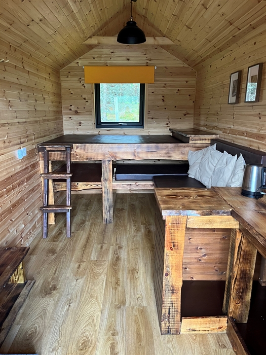 Indulge in a cosy retreat at our Glamping Cabin. Sleeps 4 (Max 3 Adults) with one pet allowed. Ideal for weekend getaways or longer stays, enjoy the comfort of a mini log burning stove, kettle, mini fridge, and double socket USB port.