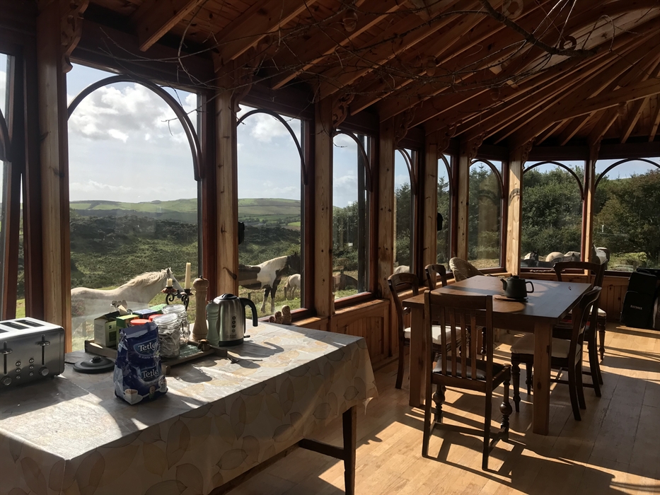 Wilder Ways horse-riding adventures now also offer B&B accommodation at our secluded farm at Glen Kerran, in the far south of Kintyre. You will stay at our 150-year old, traditional stone farmhouse in one of four, country-styled bedrooms. There are stunning views across the glen from every room, often with horses grazing just outside the window. As well as your room there is a comfortable shared sitting area downstairs with games and DVDs and the beautiful glass dining-room with tea and coffee always available.