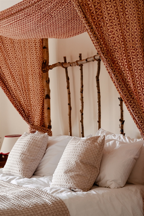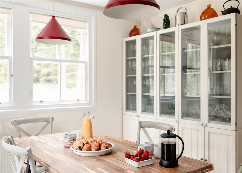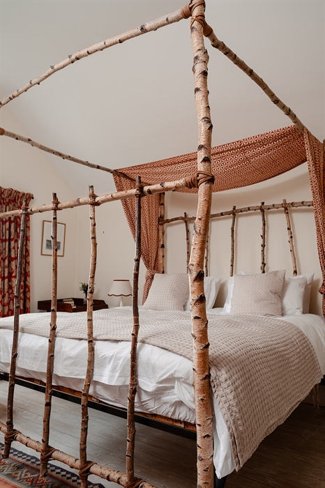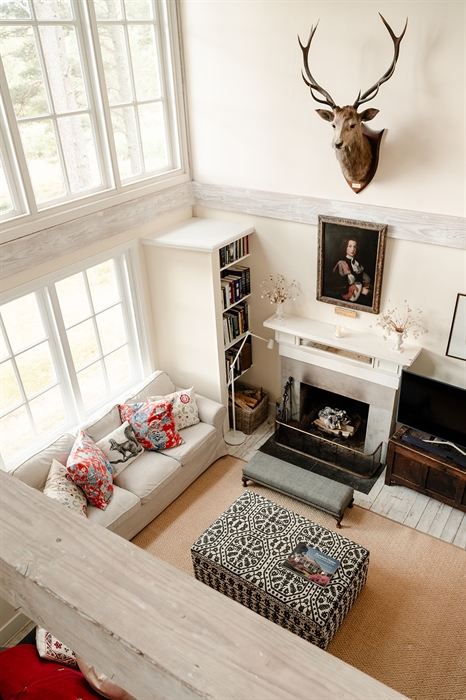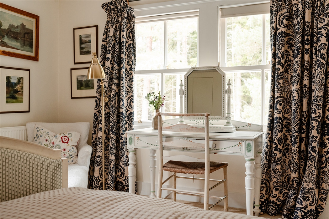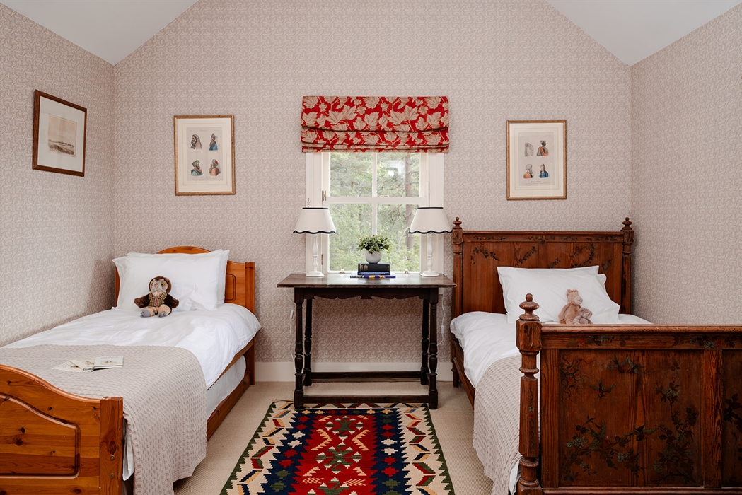 On entering the front door, you get an immediate sense of Glencarnie’s unique and eclectic decor. Hand painted Oriental furniture rubs shoulders with vintage pieces; modern art sits alongside family portraits. There’s a stag’s head mounted high on the wall, a walking stick collection, a 19th-century French conversation sofa, stairgates handmade from birch branches, and a secret games cupboard – can you find it? And books, everywhere, just waiting to be delved into.