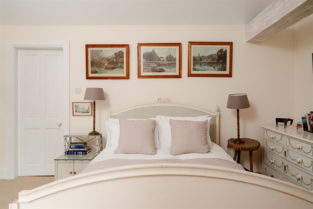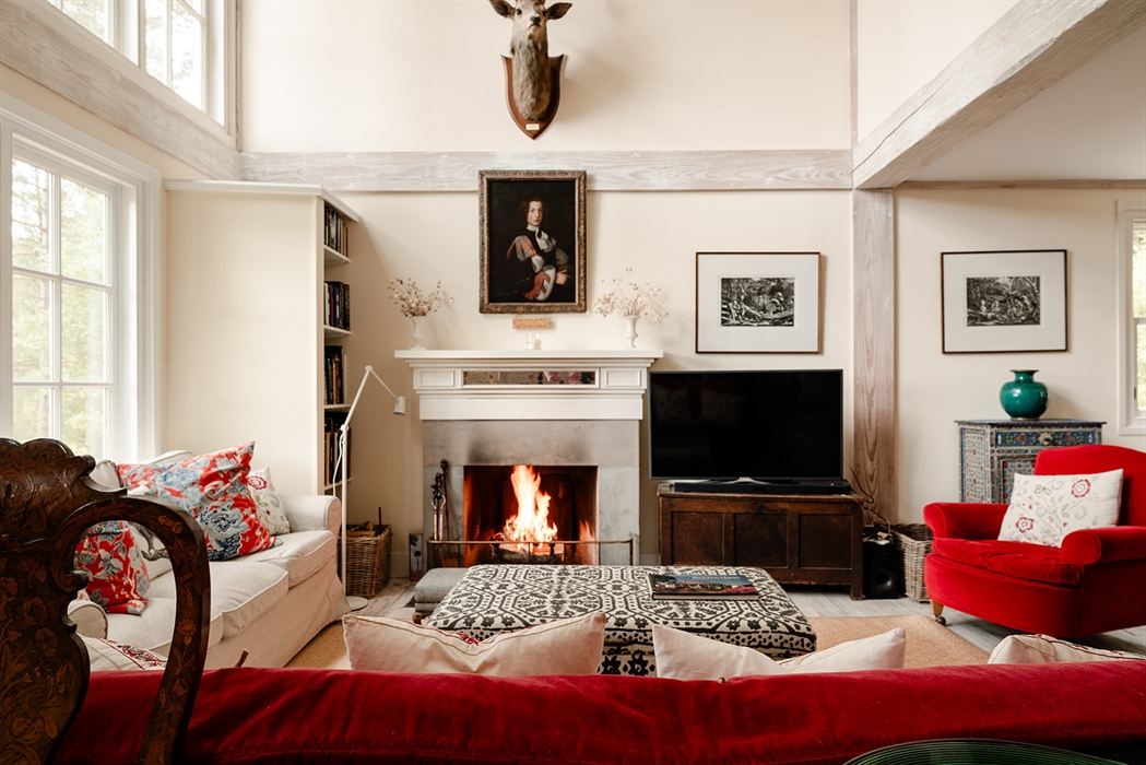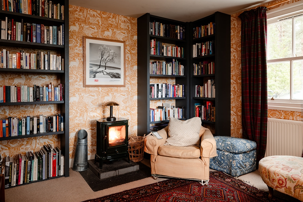 The expansive double-storey living and dining space is flooded with light. Sliding Crittal doors mean the kitchen, with its Everhot range cooker and second dining table, can be part of this room or not, depending on your preferences. The ground-floor library is the perfect place for an afternoon nap by the wood burner – or some desk work, if you must.