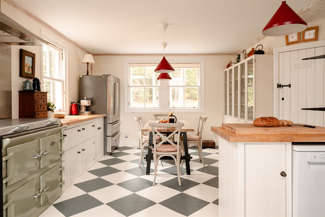 Upstairs, which is just as light and bright, are the four bedrooms. One has an ensuite bathroom, while the other three share the remaining two bathrooms. The views across the valley from the front-facing windows are spectacular, and the rear windows look onto pine woodland, where red squirrels play and roe and red deer roam, undisturbed save for the occasional dog walker.