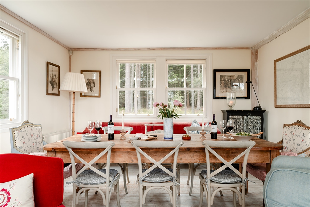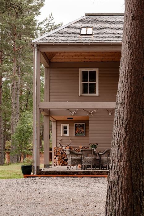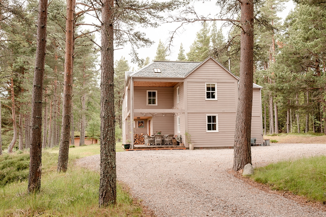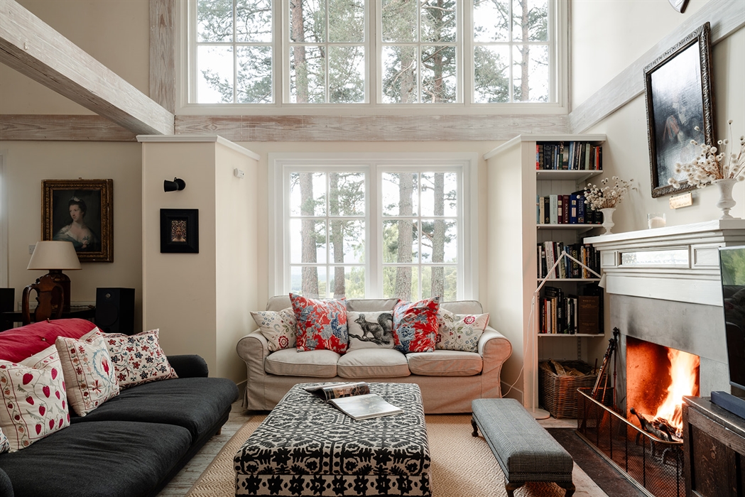 If you haven’t switched off from regular life in the short, scenic drive up the forest track to stunning Glencarnie sleeping 8, never fear: it won’t be much longer. As you wind through Scots pine woodland, breaks in the trees reveal glimpses of Cairngorm foothills and the lush farmland that lines the River Spey below. The lodge is an unexpected – and delightful – find, with its painted wood cladding, broad outdoor porch, exposed chunky beams and huge Georgian-style windows inspired by Louisiana plantation houses.