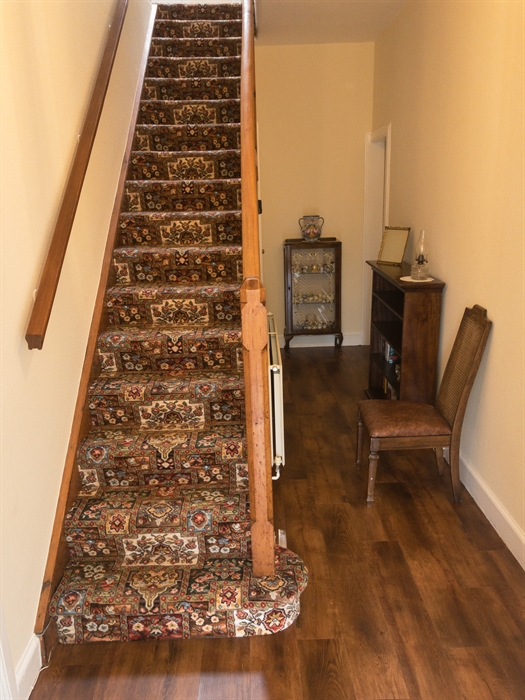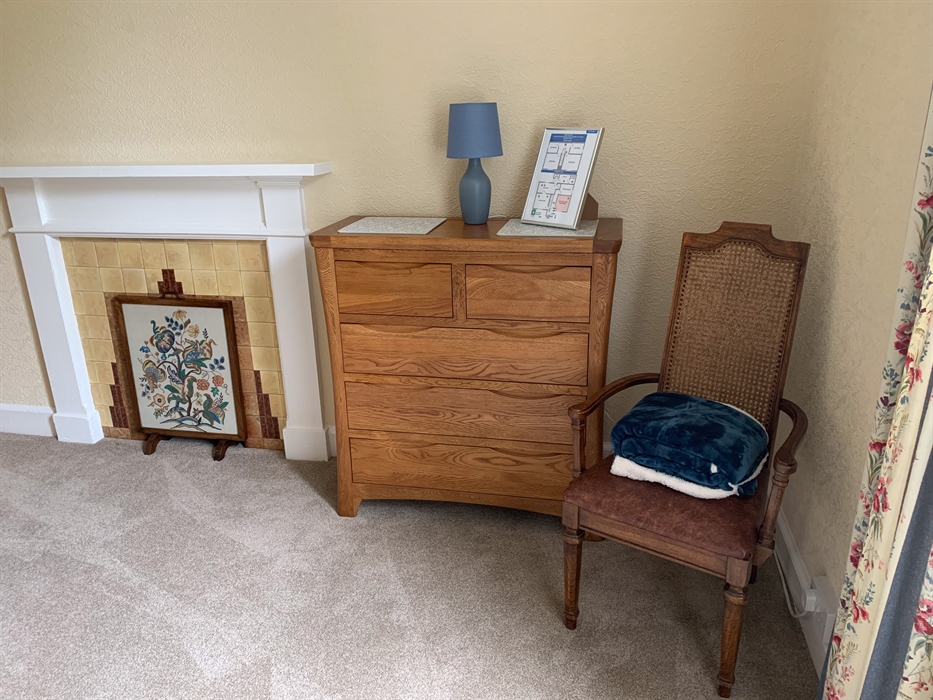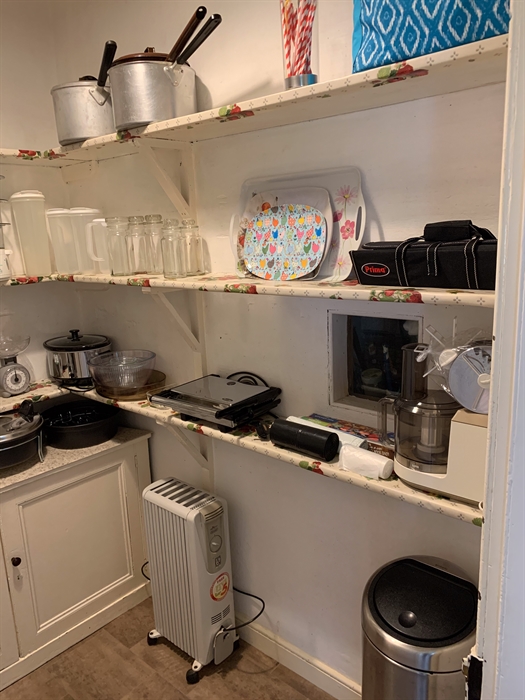 Ground Floor: Front door with three steps to Sun porch; Hallway; Twin bedroom; Sitting room with dining table; Kitchen with walk in larder; back hall with door to garden; Wet room; Utility room with coat hanging and boot space.