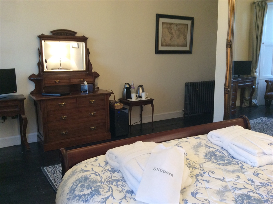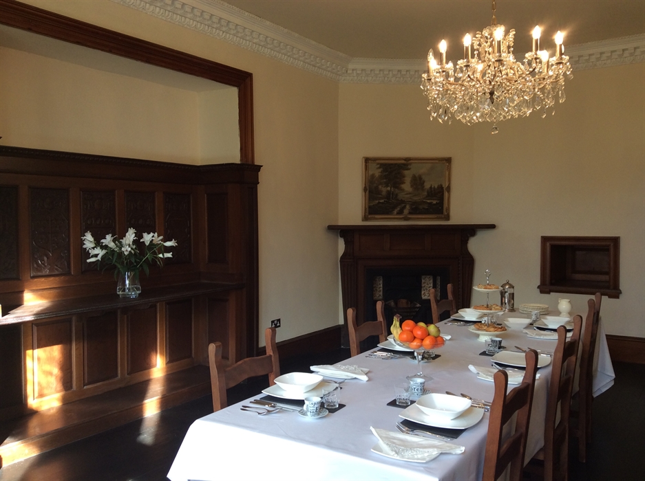 We offer luxurious guest accommodation and a delicious breakfast in our beautiful dining room with wood panelling dating back to 1630. Guests are also warmly invited to sit and relax by the roaring 17th century fireplace in our magnificent library.