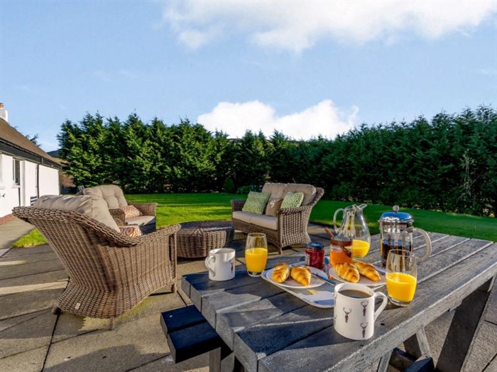 Venturing outside, the spacious wrap-around garden is located amid 400 acres of private grounds. Relax and unwind in the fantastic hot tub and admire the lovely views. There are also comfortable seating areas to enjoy al fresco dining or lazy evenings stargazing. Newly added is a large children's play area within the private grounds, perfect for your family getaway. A long, private tarmac drive, giving guests plenty of parking within the grounds, is available directly in front of the property.