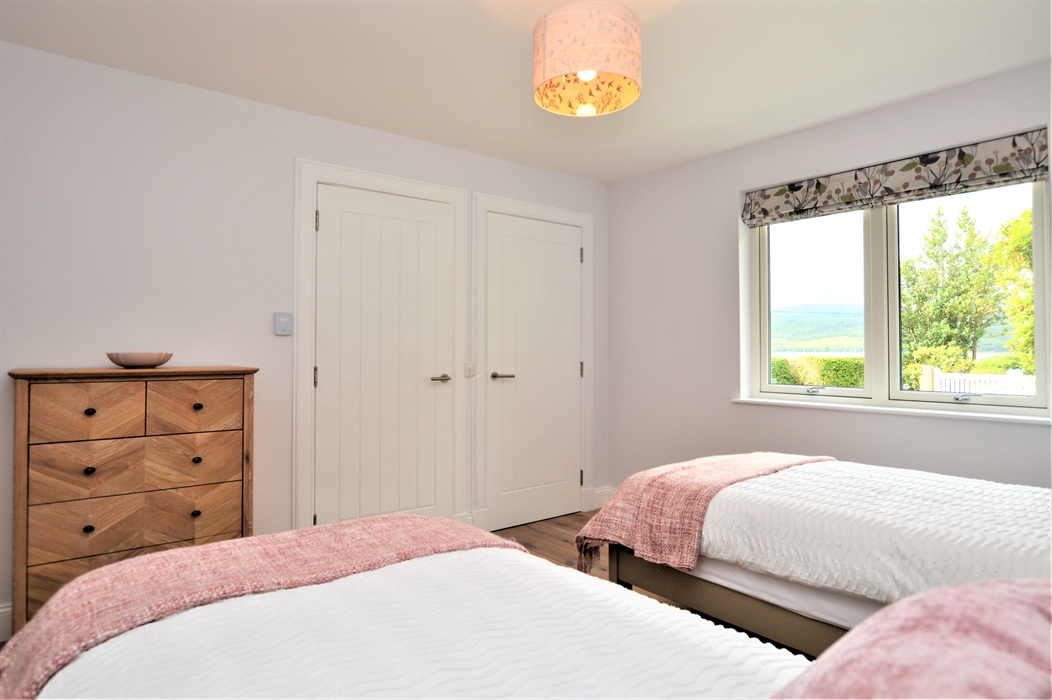 From the entrance hall there are two beautifully appointed bedrooms on the ground level. A spacious Master double bedroom featuring magnificent loch views and an ensuite bathroom. The second bedroom features a twin bedroom with side loch views. Adjacent is the family bathroom with a walk-in shower and toilet.