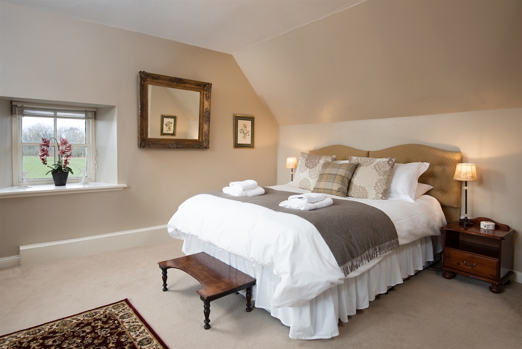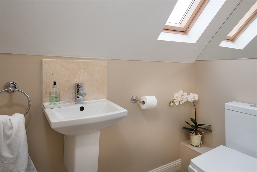 Upstairs you will find two bedrooms. The master bedroom with its king size bed is huge and enjoys wonderful views from its large window over the garden. This room has an en-suite loo and basin.