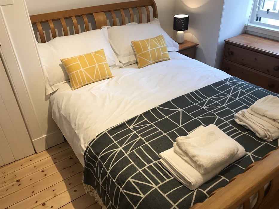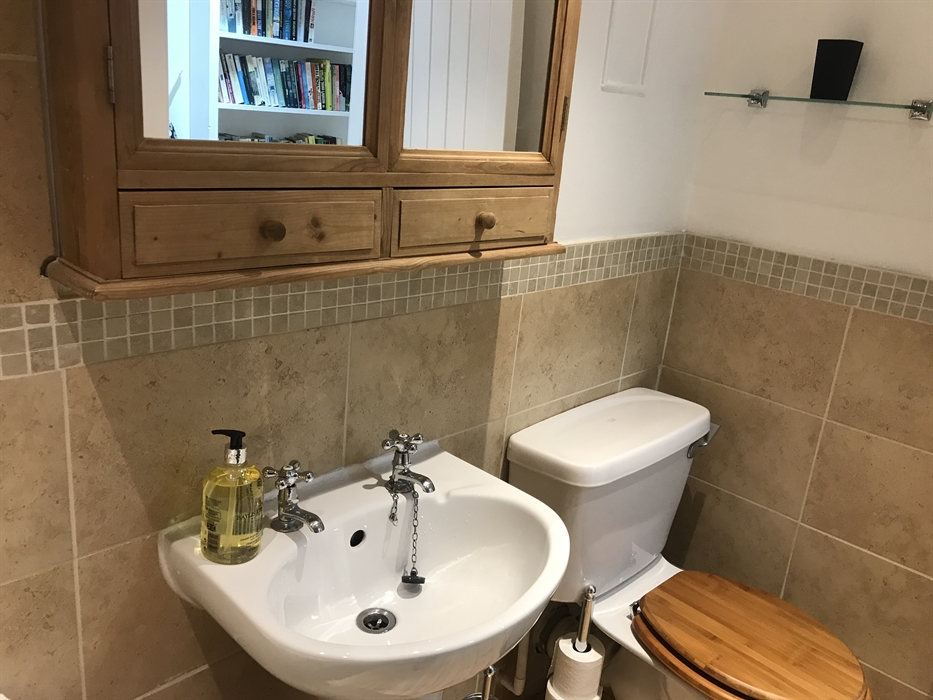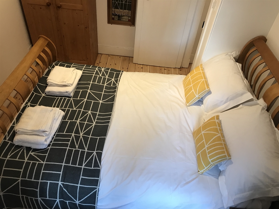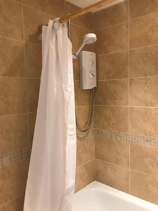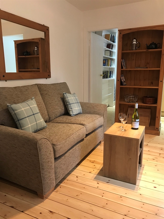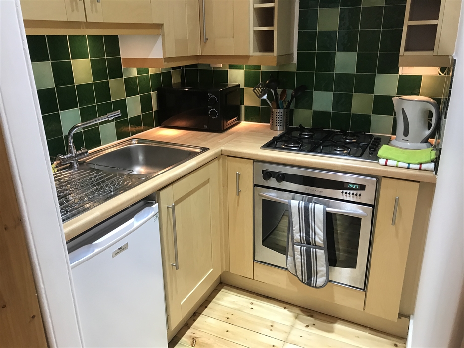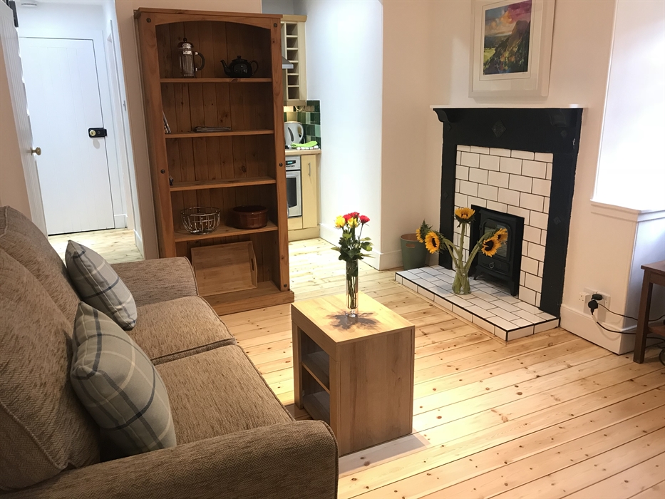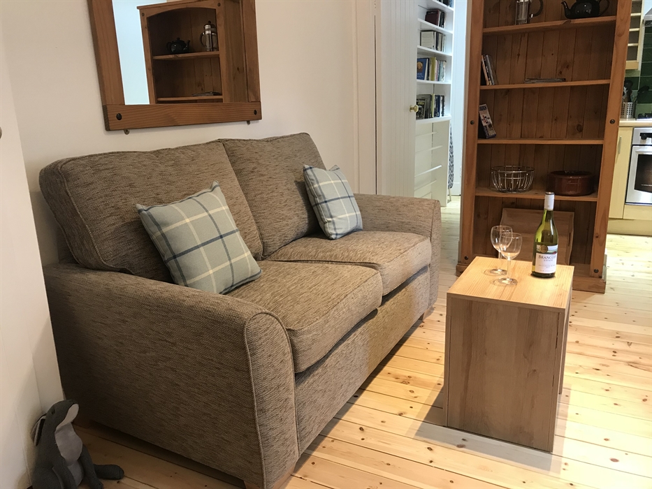 The living room has a dining area and a traditional fire place with electric fire. The two-seater sofa converts in to a double sofabed. There is a TV with DVD player. There are extra fold-away chairs for use at the dining table. The property is suitable for 1-3 adults or 1-2 adults plus 1-2 children.