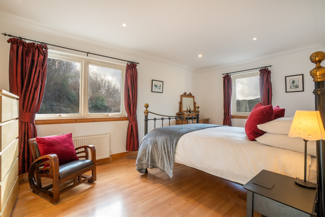 Half Moon House is a cottage for six and sits on the edge of the village with lovely river views and glimpses of the loch too.