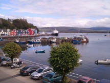 Panoramic views of Tobermory Bay, Main Street, Fishermans Pier and Calve Island.