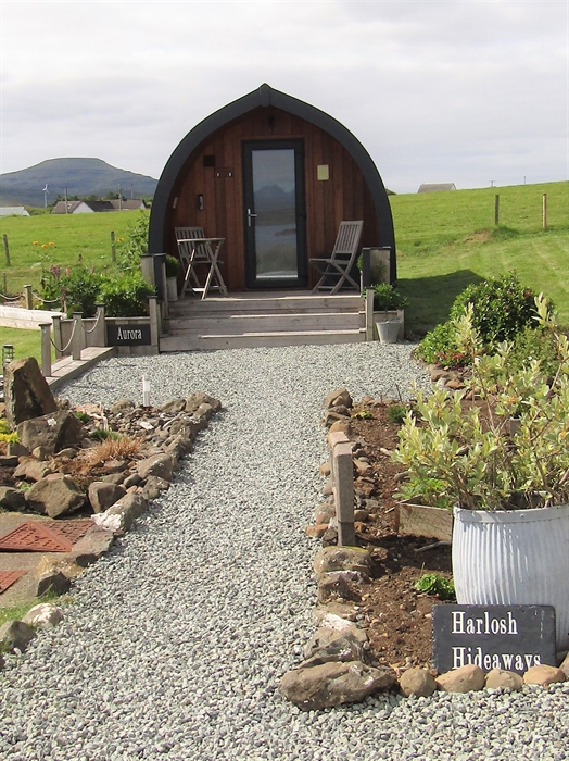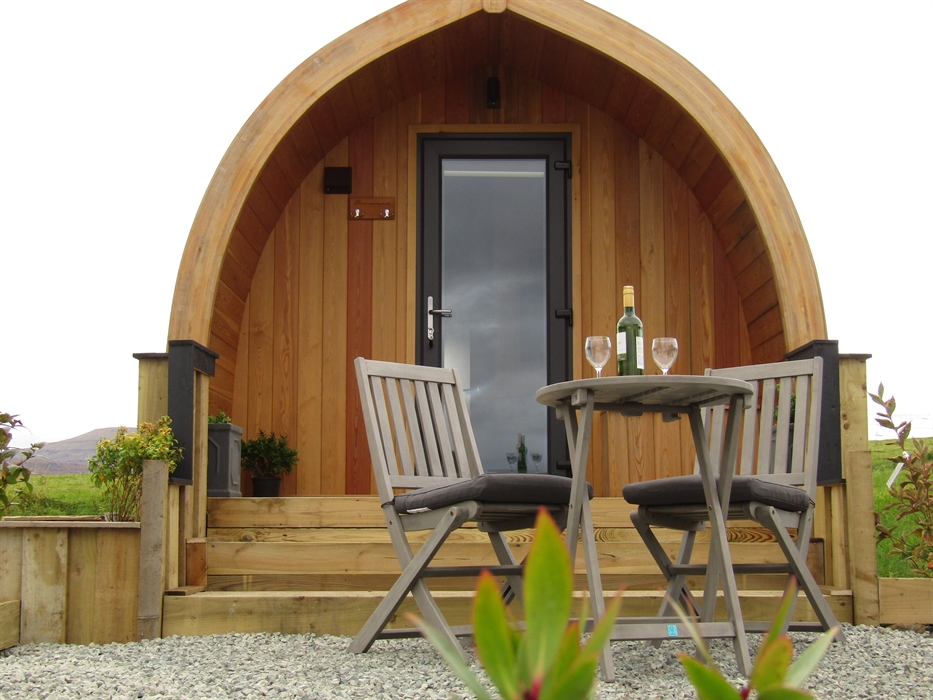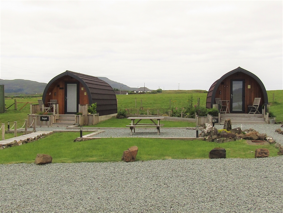 Come and relax in one of our two luxurious glamping pods. We are situated on a quiet single track road five miles from Dunvegan with wildlife and walks from your doorstep.