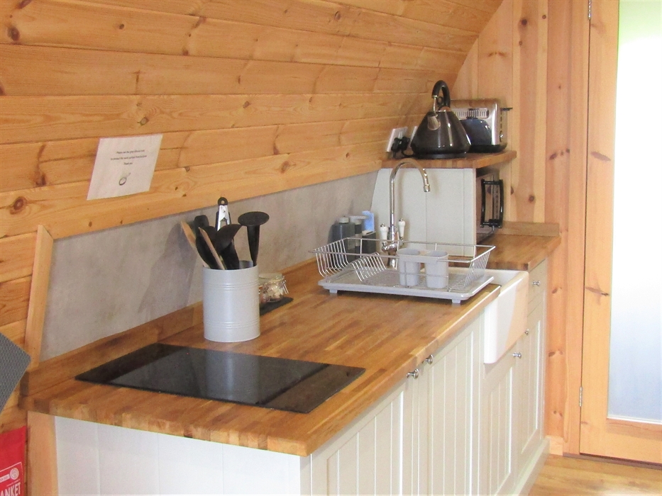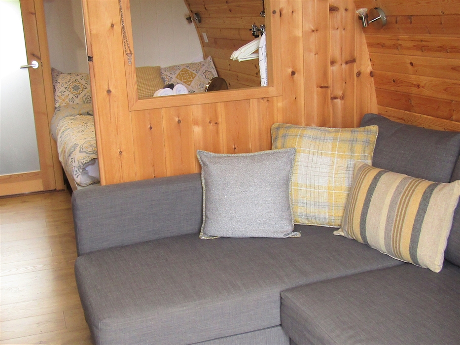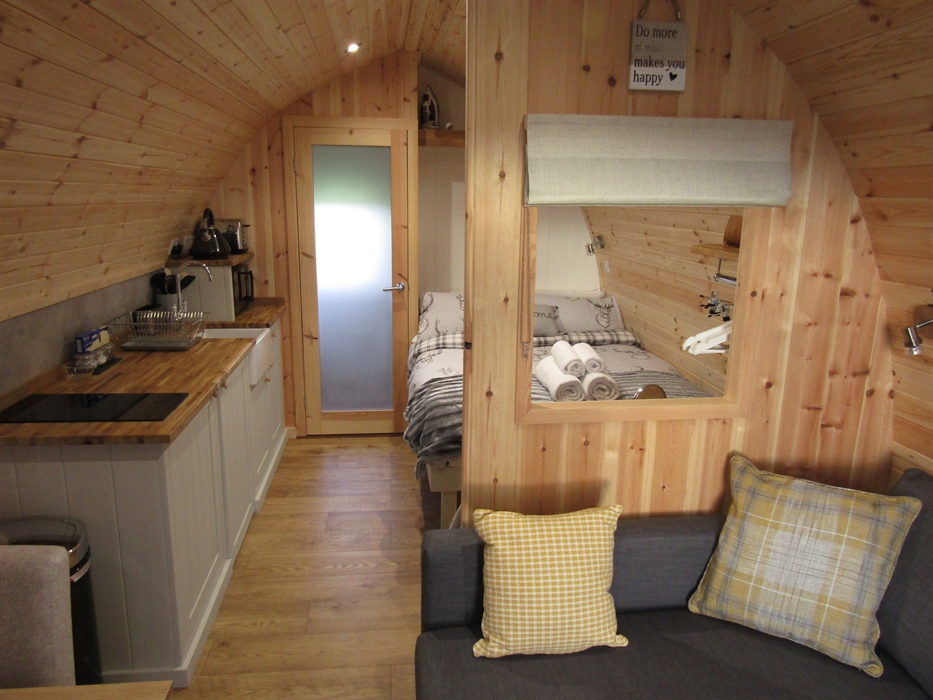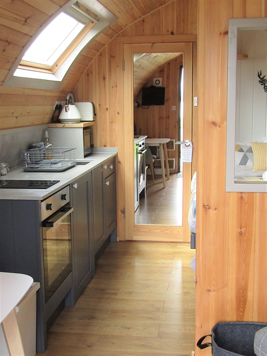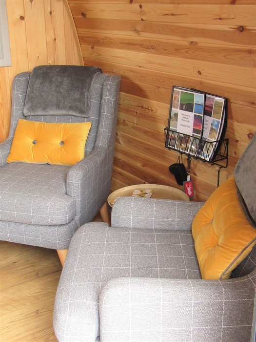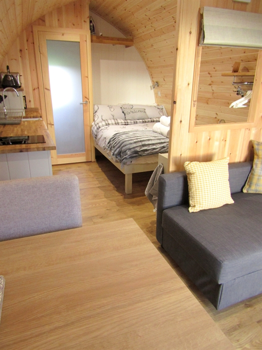 In the pods, you will find a cosy seating area, dining area, TV with Freesat, free WiFi, a well equipped kitchen area with fridge and small freezer section, induction hob,and microwave.