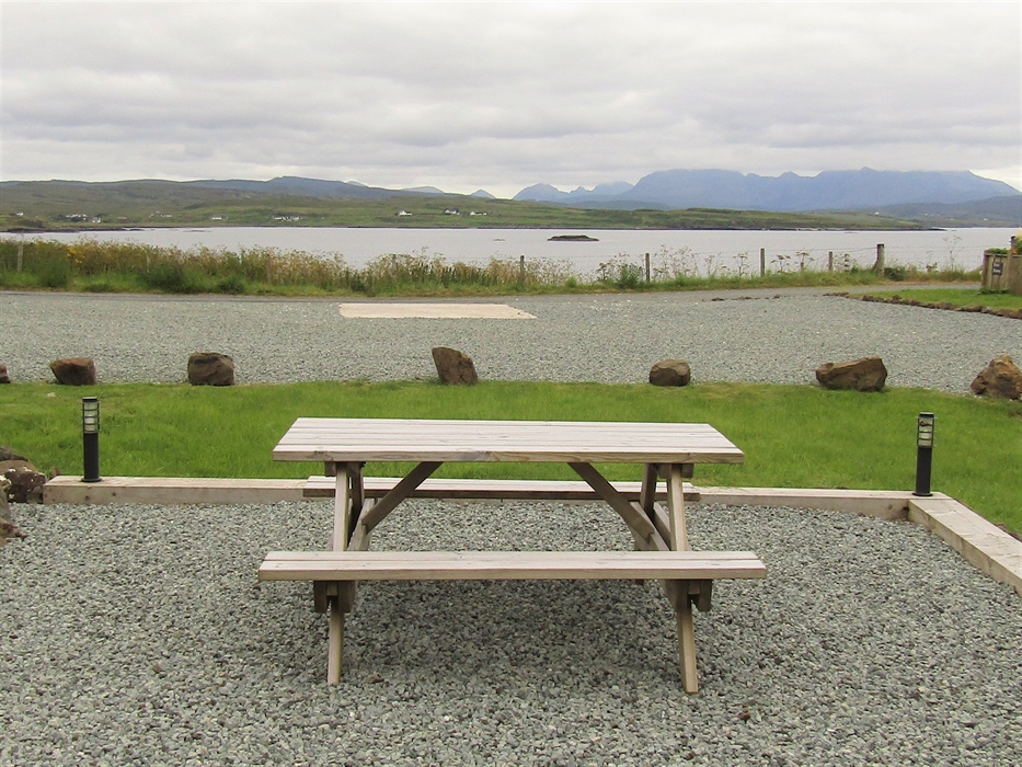Both pods have uninterrupted views of Loch Caroy and the Black Cuillin mountains to the front. From the back of the pods Macleod's tables are clearly visible.