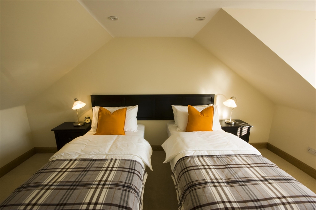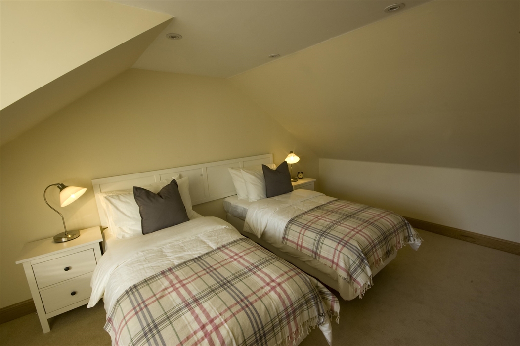 Harviestoun House is a luxurious sandstone cottage which comfortably sleeps 8 people in four bedrooms. There are two bedrooms on the ground floor. Bedroom one, with en-suite shower room and fitted wardrobe, has the flexibility of being either 2 twin beds or one superking size bed. Bedroom two has a double bed. Upstairs, reached from the galleried landing, bedrooms three and four can be either twin rooms or have superking size beds. Both rooms share a modern bathroom with over bath shower.
