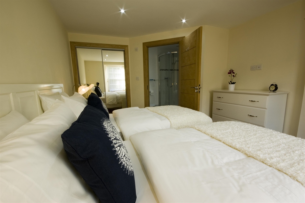 The kitchen, with all modern conveniences including 4 ring gas stove and double electric oven, has a dining table for 8 people and a television with Freeview. Leading from the kitchen is a utility room with washing machine and tumble drier. Also just off the kitchen is a sunroom which leads to the courtyard garden with outdoor seating and barbecue.