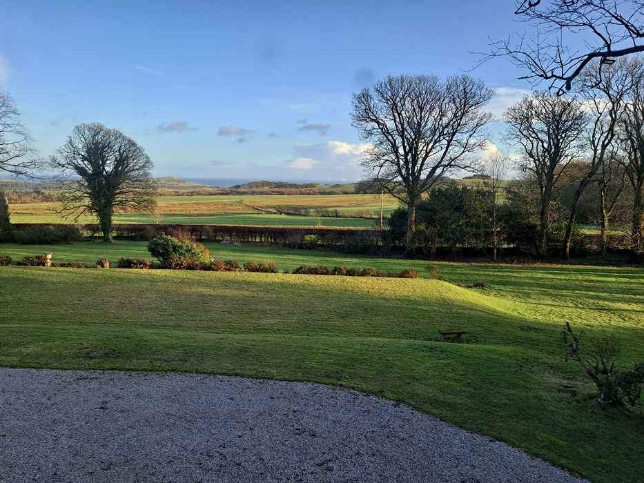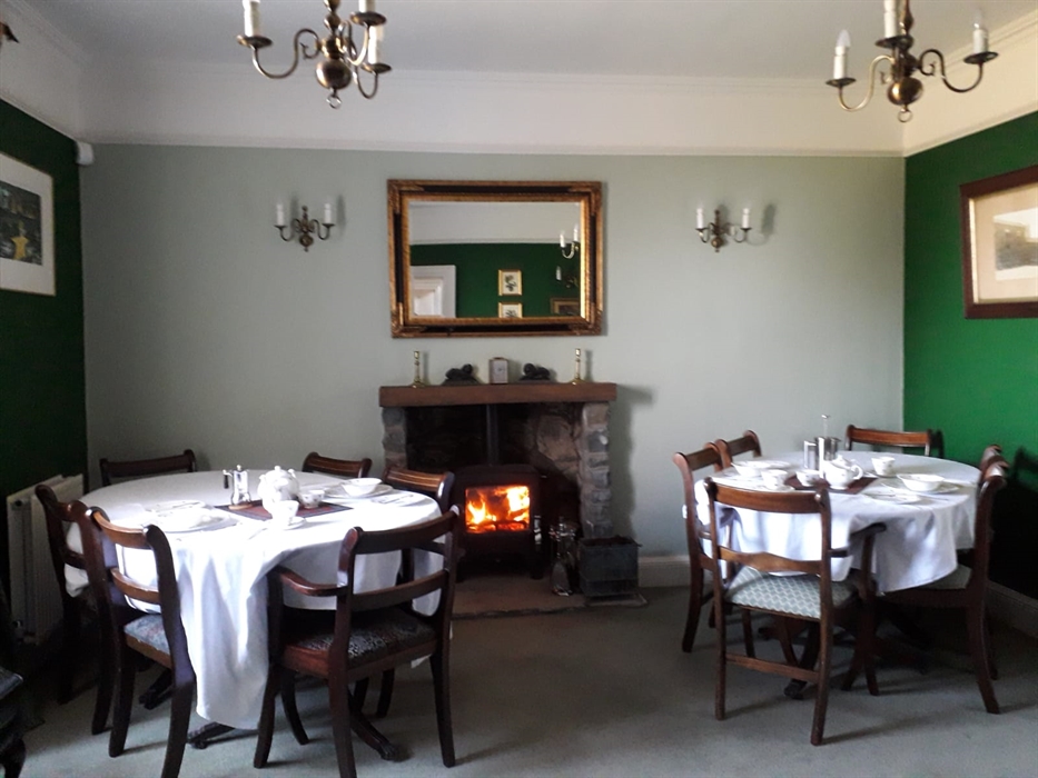 Breakfast is served in our dining room with each room having their own table. There are views over the lawns and to the coast beyond. The room is centrally heated but has a log burner for those colder days.