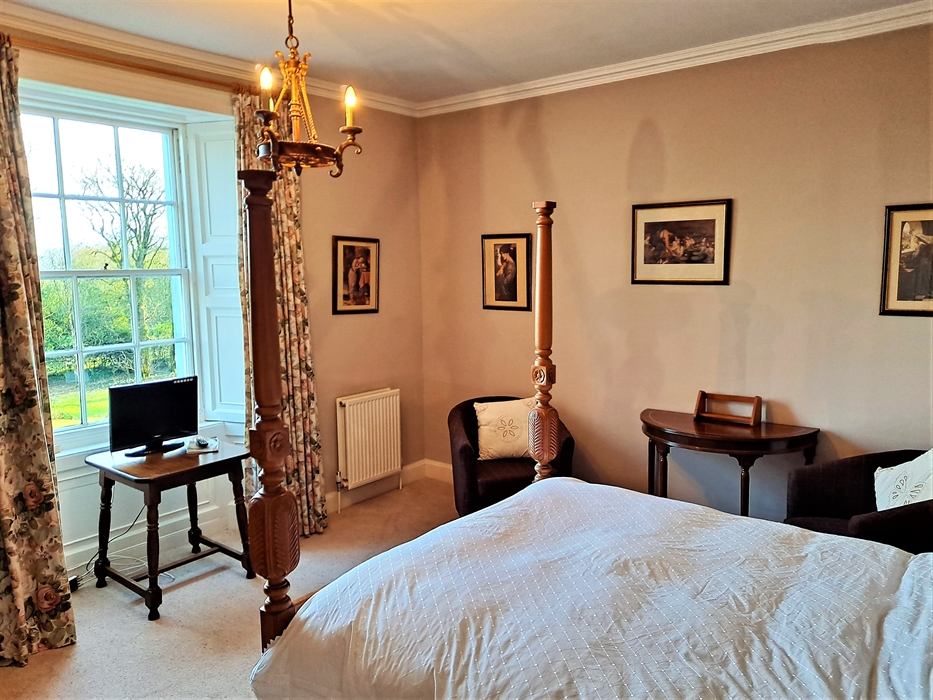 We have two double rooms available. Solway, a large room with a Super King Sized Bed a walk in shower and a free standing bath. Port Mary is an en-suite room with a King size four poster bed with a medieval tapestry. Both rooms sea views and views over the grounds. There is also a reading room with local guide books, leaflets and maps for guests use.