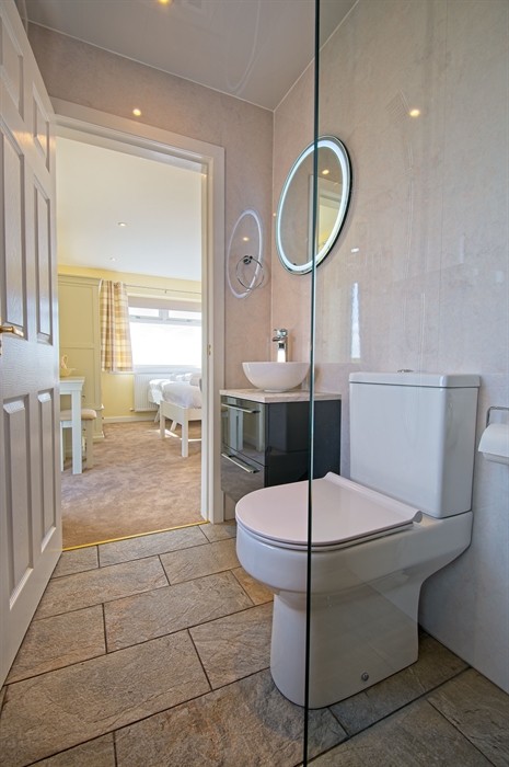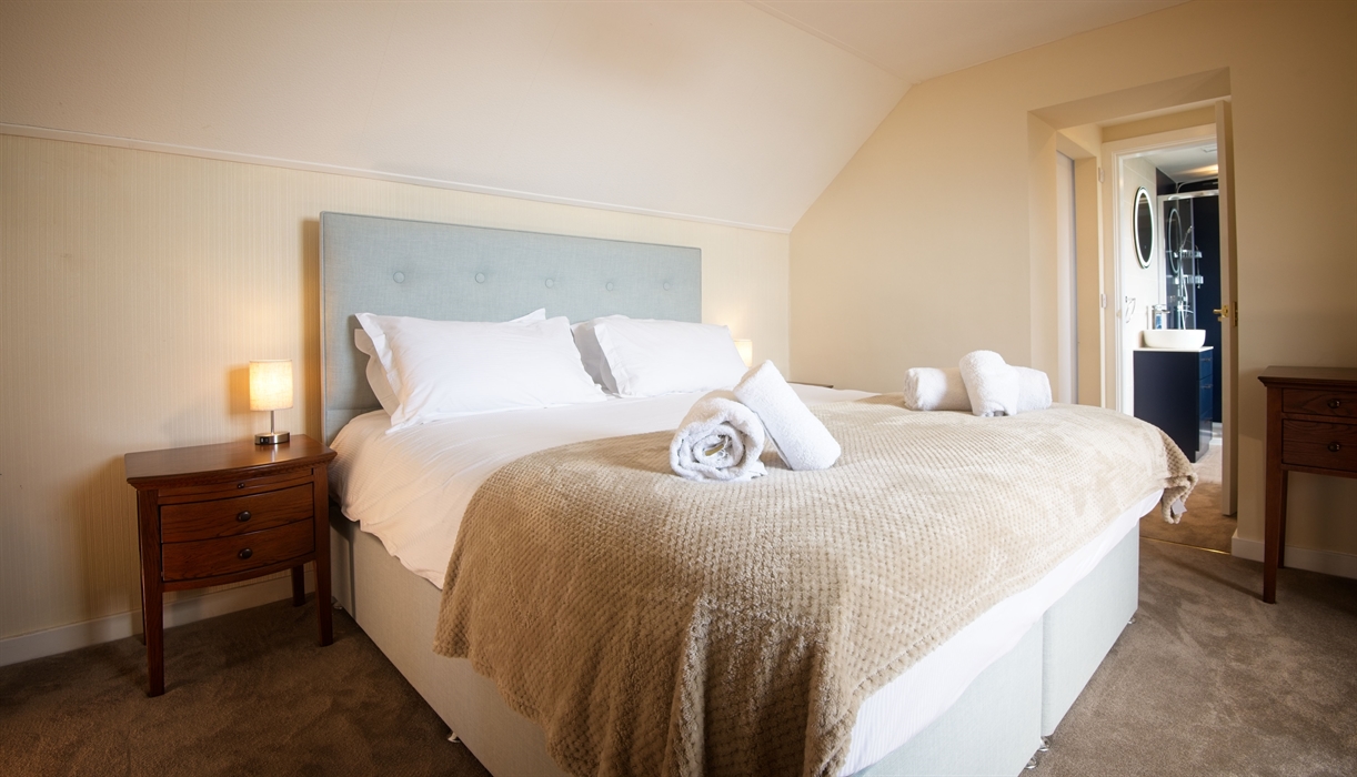 Accommodation for 8 over two floors: Ground floor one step up to entrance; Living/Dining Room with Wood burning Stove (with initial supply of fuel provided); Kitchen; Conservatory; Twin Bedroom; Twin Bedroom with en-suite Shower room with walk in shower, toilet & wash basin. Main shower room with walk in shower, toilet and basin. First Floor: King Bedroom;Bathroom with walk in shower, toilet & wash basin Super King Bedroom; en-suite bathroom with walk in shower, toilet & wash basin, free standing bath. Outside: Enclosed Garden with garden furniture; Parking.