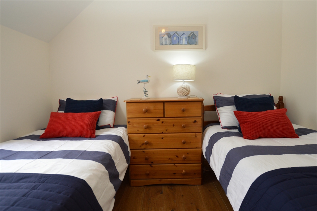 Bedroom 3: Upstairs twin bedroom, wardrobe, bedside tables