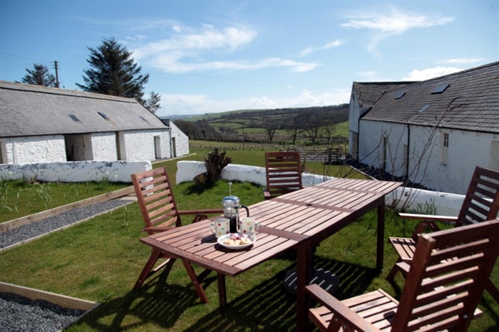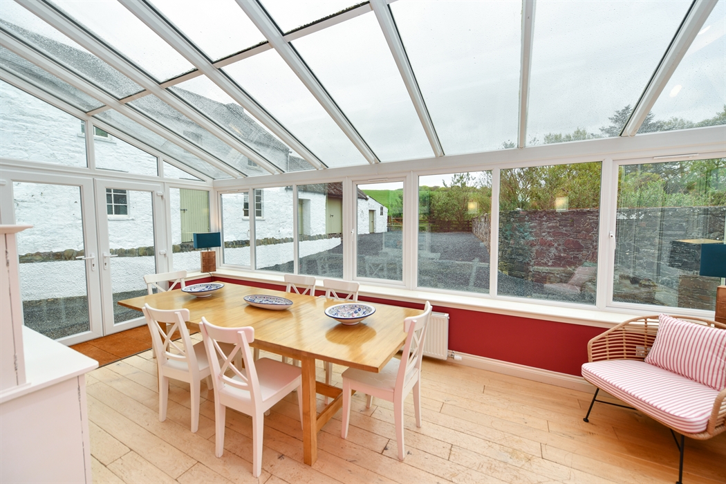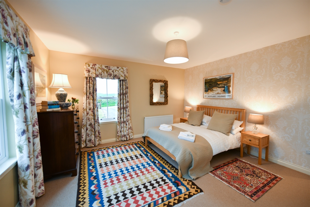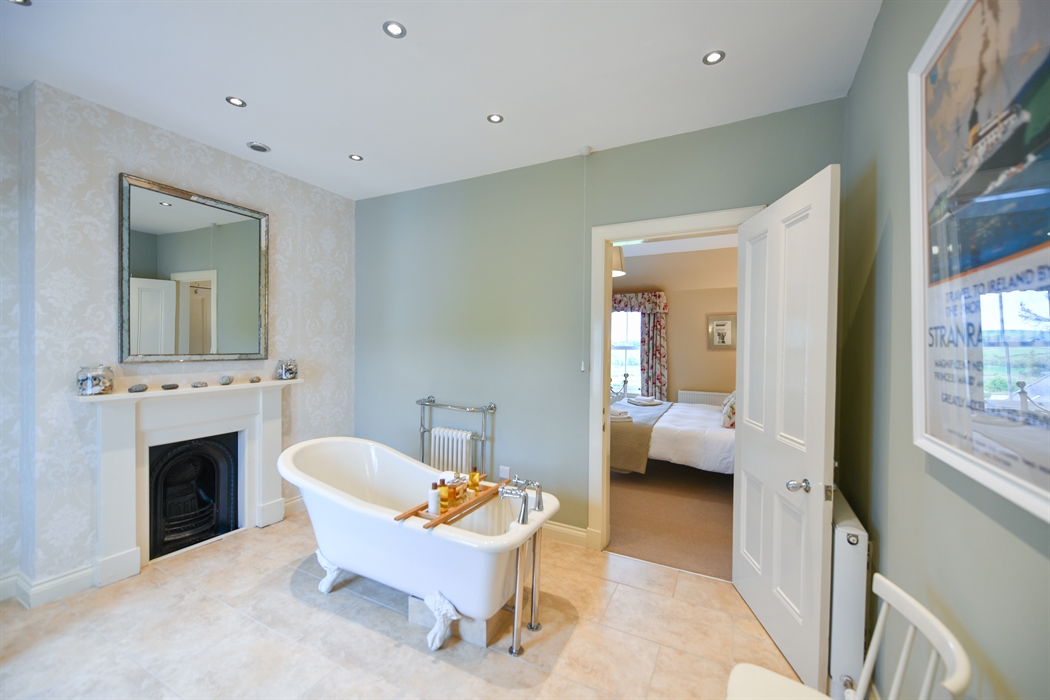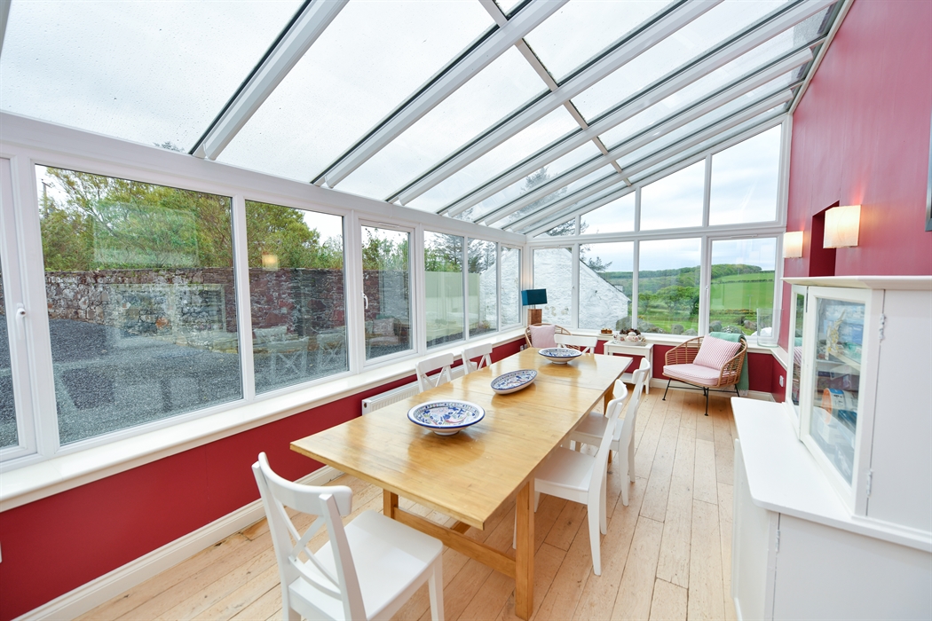 Located on the historic Corsewall Estate, High Clachan Farmhouse has recently been fully restored and renovated. This luxury, 4* self catering house comfortably accommodates eight people. All the bedrooms and public rooms at High Clachan have charming rural views. On entering, the pretty farmhouse has a large breakfasting kitchen with restored church pews forming seats around the dining table. Off the kitchen is a large conservatory, with another dining table and arm chairs, so guests can either choose to eat here, relax, play games or take in the views. The sitting room is located to the left of the front door and has a log burning stove - which gives off a great heat and wood is provided free of charge. There is a large corner sofa, other various arm chairs and chairs, a television and DVD player. The master bedroom, with a king size bed, is also located on the ground floor. It has an en suite bathroom with a bath and separate shower. Next door is a bedroom with a full sized bunkbed, which is ideal if you have children and want them close by at night. Upstairs there are two further bedrooms, which have zip and link beds so can either be made up as twin or double (super king) beds. Full of character, these bedrooms each have the original fireplaces. Both bedrooms have huge en suite bathrooms with Victorian style free standing baths for added luxury and separate showers and under floor heating. There is also an additional house bathroom upstairs, with a bath and overhead shower. Downstairs, the house also has an utility room, with a washing machine, which is a great space for storing and hanging up outside clobber. There is also a separate WC. All linen, fluffy towels, extra thick feather filled duvets and pillows are provided. Heating, electricity and logs are also included in the price. High Clachan is equipped with WiFi, a Smart TV, DVD player; Roberts Revival Bluetooth digital radio, Delonghi coffee machine. a selection of board games, books and classic films. It has its own private garden with a croquet lawn including garden furniture and a barbecue. The farmhouse is 3/4s of a mile down a quiet country lane from Port Beg - one of the Estate's three beaches on the sea loch of Loch Ryan. Port Beg is a pretty bay, pebbly down to the waterline and then sandy in the sea - ideal for paddling and swimming. There are lots of rock pools - so a bucket and a net is a must for the kids! There's a grassy area for picnics and barbies and the views out to sea, with Ailsa Craig in the foreground and Arran in the distance, are simply magical. Lady Bay and Boat Bank are the two other beaches on Corsewall Estate that guests at High Clachan can explore. Both of these are wonderful if you like collecting shells or pebbles - oyster shells and mussels to cowries and scallop shells never fail to disappoint. Bird watching down on the shores of Loch Ryan or in the woods is second to none. Guests are welcome to bring their own kayaks/SUP boards/wind surfers - there are great opportunities for these water sports on Loch Ryan. High Clachan has a huge lawn in front of the house - so it's a secure place for children to play football or for a game of croquet - croquet set supplied! There are lots of walking paths around the farmhouse and on the Estate to enjoy. Head down to the shore on Loch Ryan, or a walk through the fields at the back of the house will bring you to a network of walking and cycling tracks through the woods around the Estate. At certain times of the year, the tracks are full of colour - from snowdrops in February and daffodils in March to bluebells in April and May. The Blue Peter pub in the village of Kirkcolm is 3/4s of a mile away. The pub has good pub grub and also does great fish and chips - a 'must eat' while on holiday by the coast! There are so many things to do and see in Dumfries & Galloway - mountain biking at one of the 7Stanes mountain biking centres; walking in the Galloway Forest Park; visiting the Cocoa Bean Chocolate Factory at Twynholm or the Gem Rock Museum at Creetown. Culzean Castle and Country Park is just over an hour's drive up the scenic Ayrshire Coast - which is a great attraction to visit as there is so much to see and do.