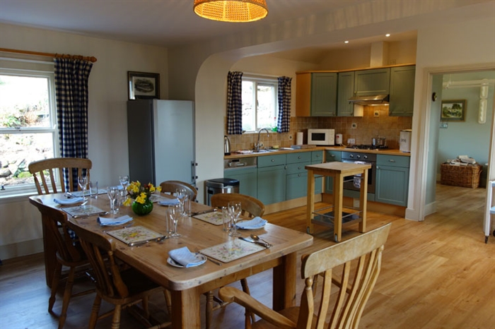 Ground Floor: Large utility room with plenty of room for wellies, coats, golf clubs and fishing rods. Shower room. Large kitchen/dining room. Sitting room with wood-burning stove. Super-king double bedroom. Bathroom with separate shower.