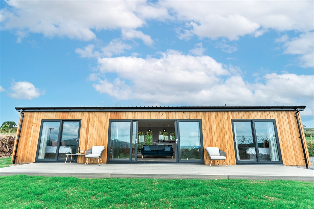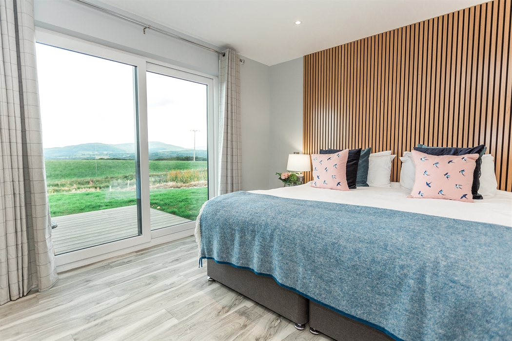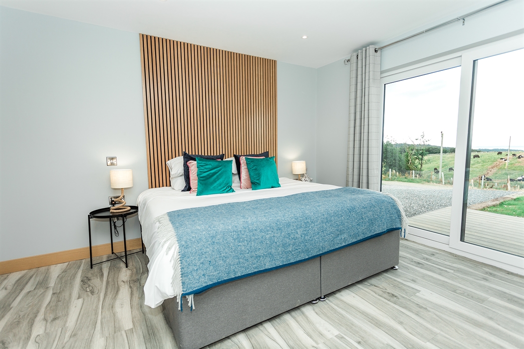 Accommodation for 4 across one floor: External decking area with seating; Open plan living, kitchen and dining area; King size bedroom with zip n’ link beds so can be a twin (please state preference when booking) and ensuite bathroom with bath; King size bedroom and ensuite bathroom with walk in shower. Outside: Utility Room and decked area with seating