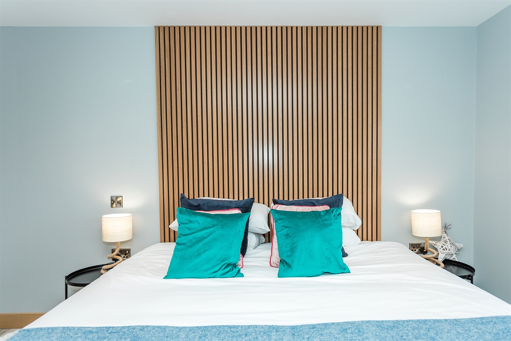 The minimalist kitchen offers everything you need for effortless dining, complemented by a vibrant dining area with colourful touches in the crockery and soft furnishings. For added flexibility, High Tide features Zip-and-Link beds in one of the bedrooms, allowing you to choose between two King-size bedrooms or one King and one Twin - ideal for families or friends travelling together. And wherever you lay your head, you'll wake up to the same breathtaking view that fills the living area.