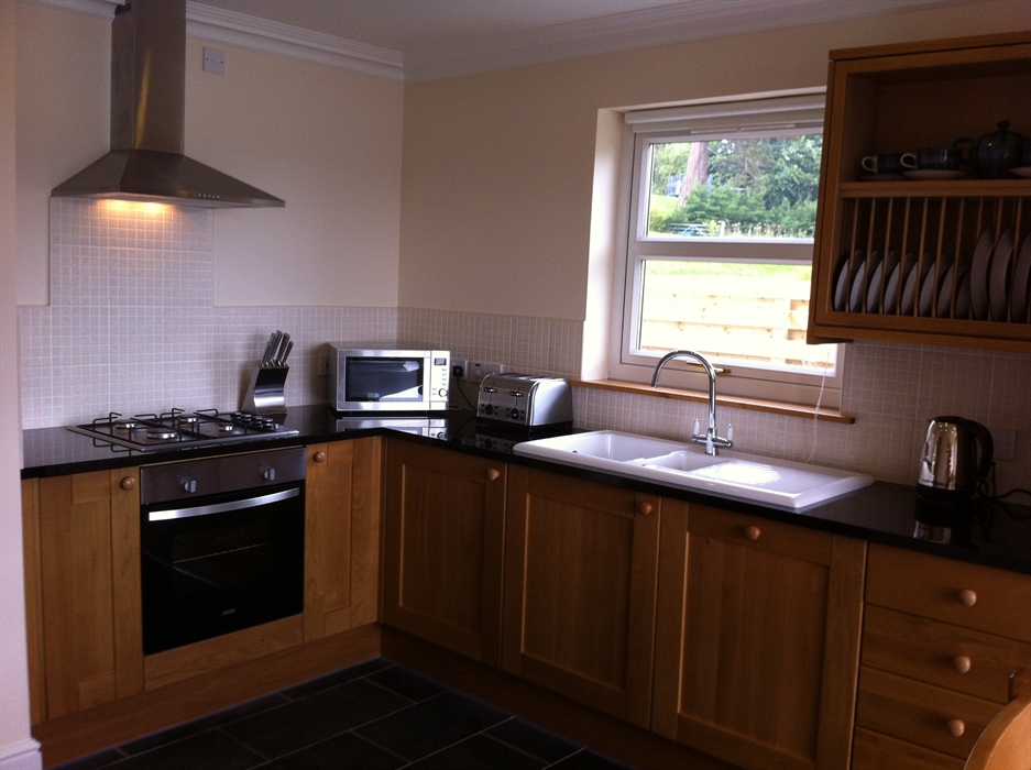 Chestnut Cottage offers 2 double/twin bedrooms. Upstairs is 1 family shower room with a further shower room downstairs.. Downstairs offers a lounge with sofa-bed and 42" flatscreen Plasma TV, DVD and freeview, a well equipped kitchen with dishwasher, washing machine and table and chairs for six persons. Access to the private garden and bbq area is gained through patio doors from the lounge. The kitchen and lounge boast three arched windows to make the most of the outstanding views. Heating - Under floor gas central heating downstairs and radiators upstairs. All gas, electricity, towels and linen are included.
