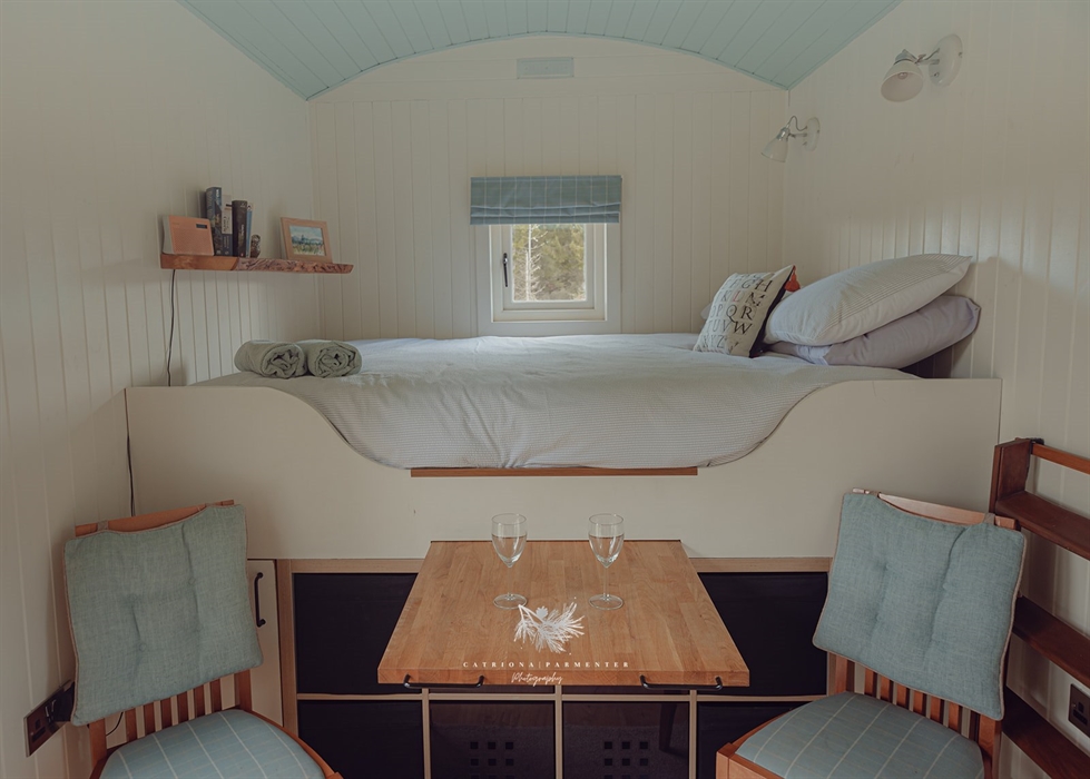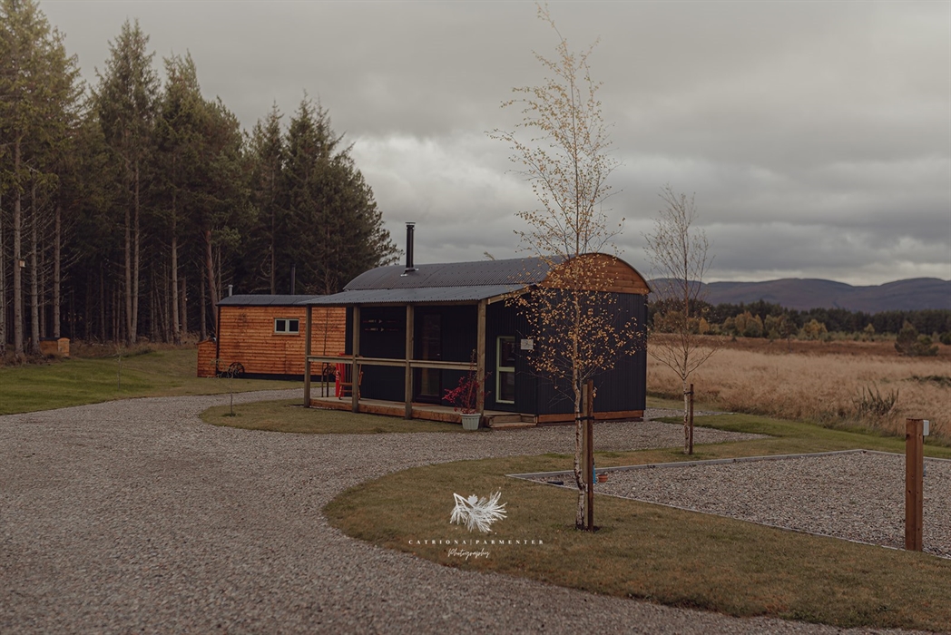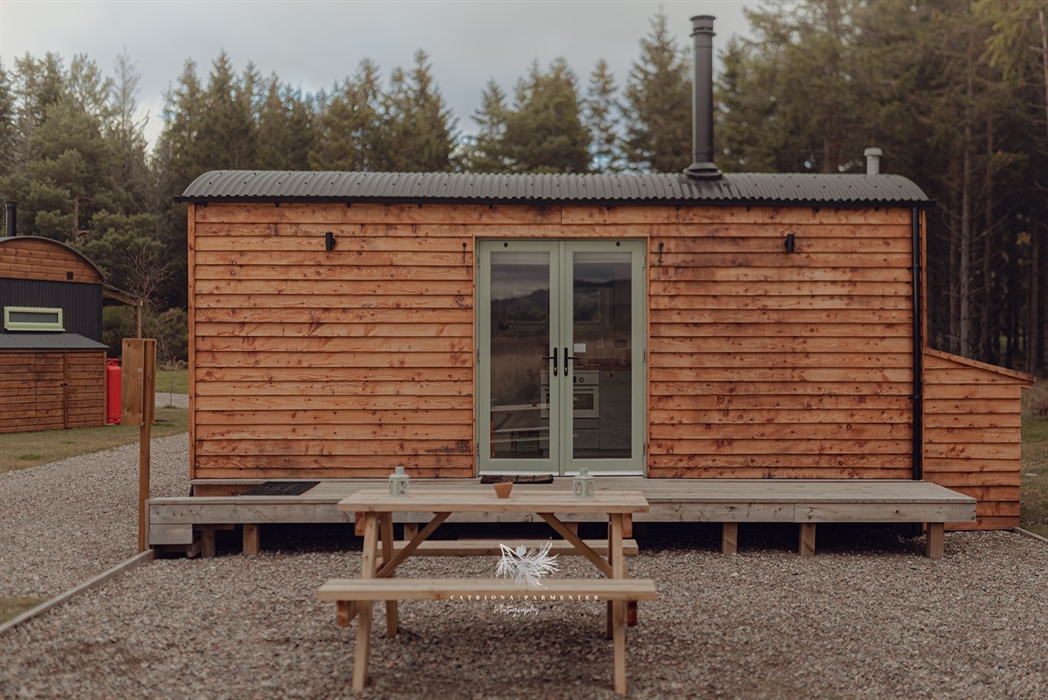 Shepherds hut accommodation with stunning views to the Cairngorm Mountains.