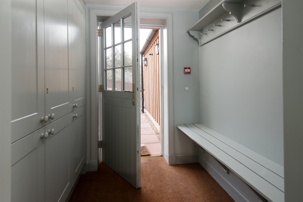 Flat access from the parking bay. This leads into a boot room with bench seating and hanging rail.