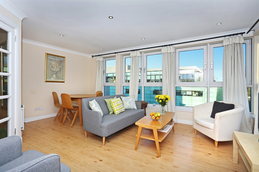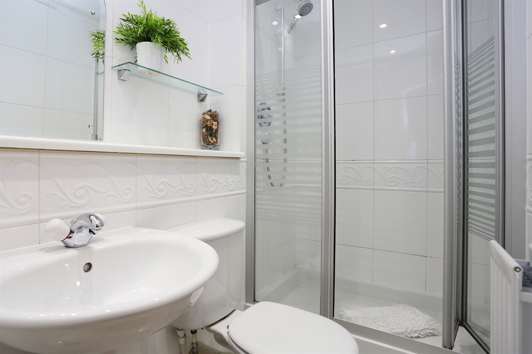 The apartment has two cosy bedrooms, both with large windows which let in lots of natural light. The master double bedroom of the apartment includes an en-suite bathroom with a shower cubicle.
