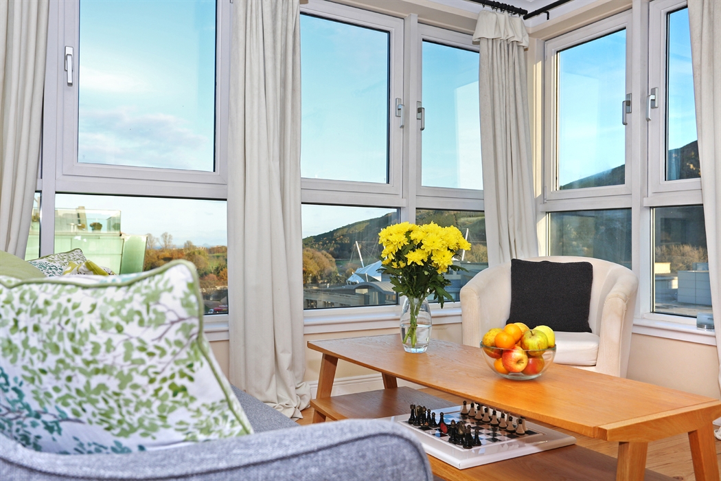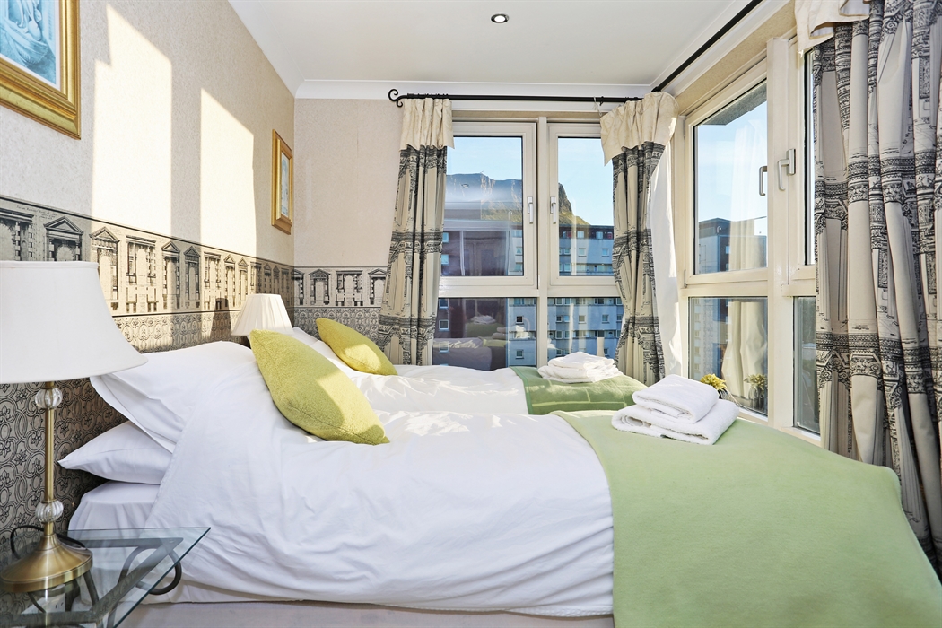 The second bedroom has twin beds and shares and equally stunning view across across the legendary Aurthur’s seat.
