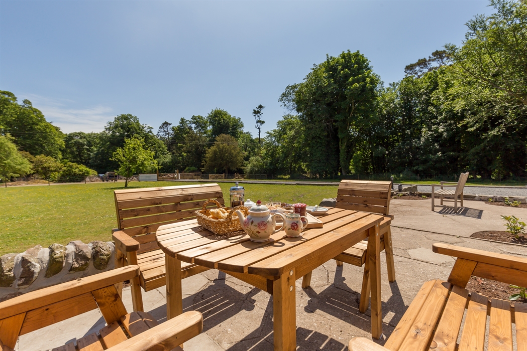 Home Farm Cottage has its own private patio garden area to the rear, with garden furniture, large log store and bike shed and a barbecue. To the front are extensive lawns and woodland.