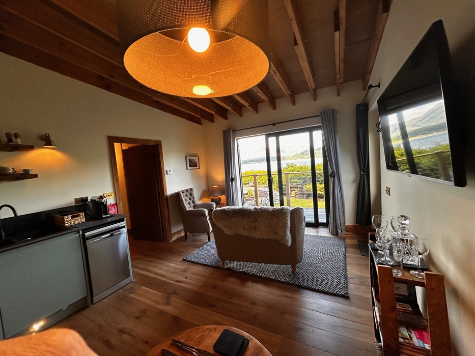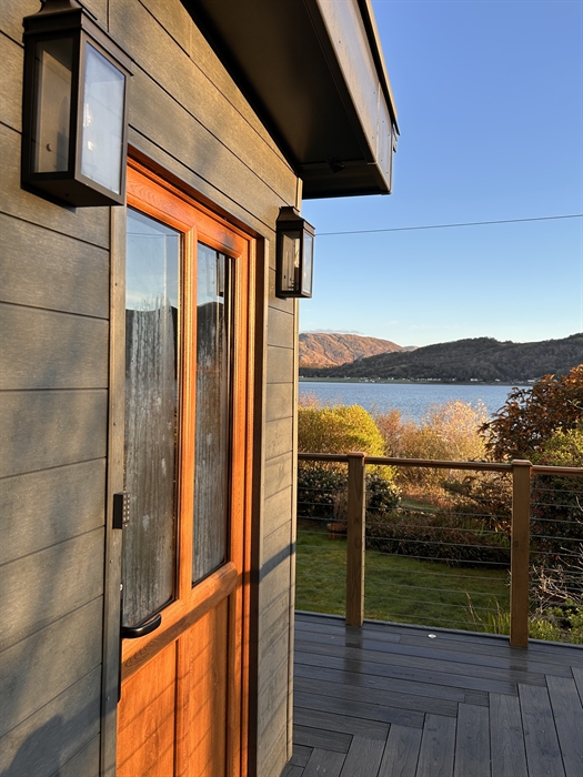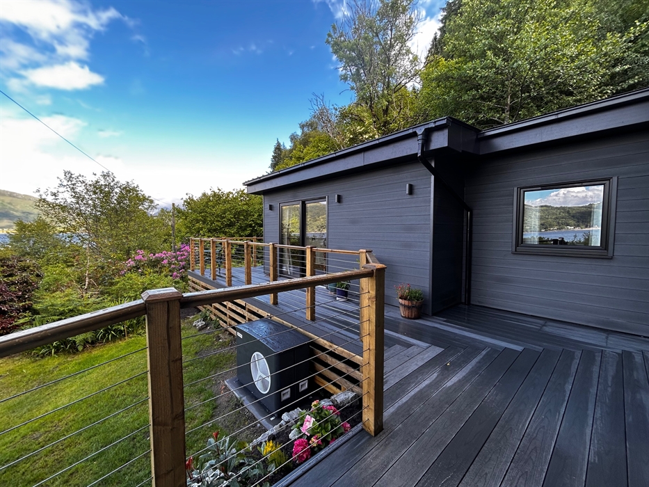 A spacious, brand new self-contained lodge situated in a garden and forest setting enjoying fantastic forward facing views across Loch Linnhe to Ardgour and in sight of the Glencoe mountains.