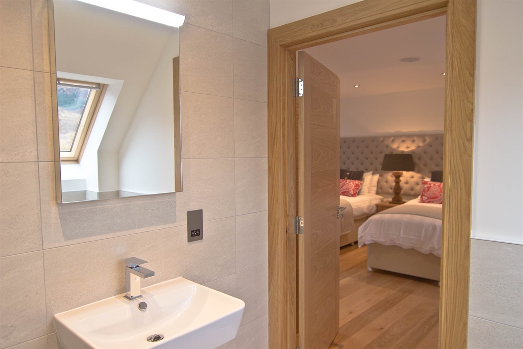 Upstairs large double / twin bedroom with luxury en-suite shower room, flat screen TV and music system.