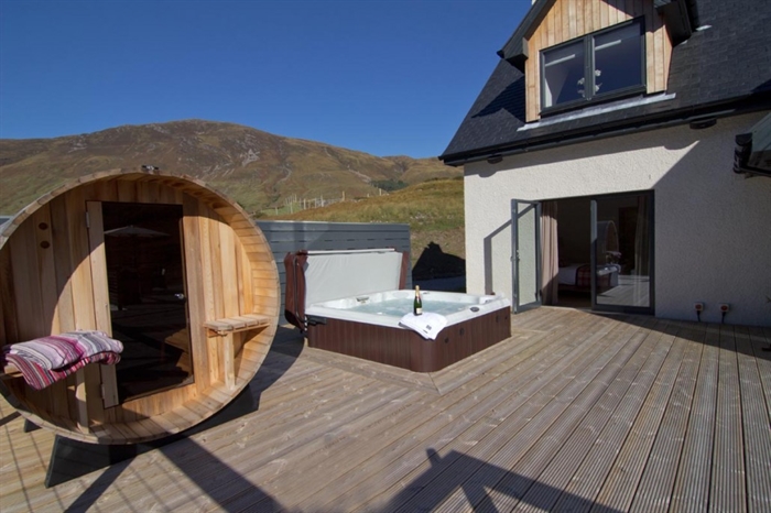 The front of the cottages are fully decked complete with hot tub, sauna, BBQ and garden furniture, this area is also part of the audio system for you to enjoy music while relaxing in the hot tub or dining alfresco.