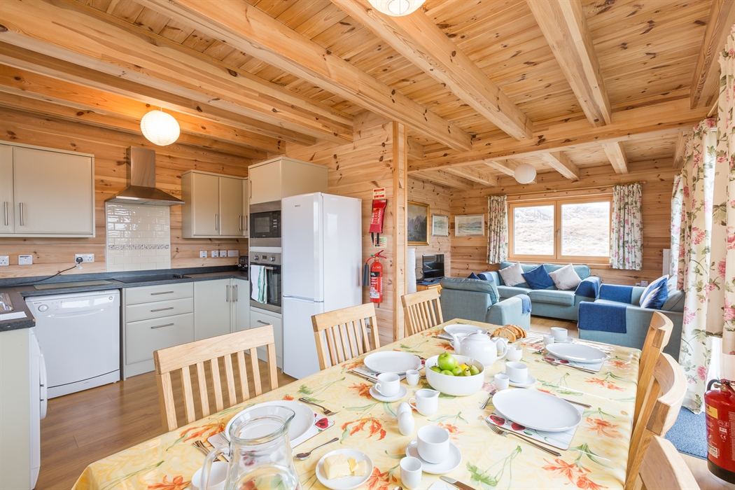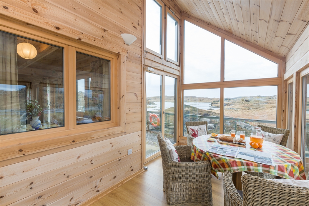 Inver Lodge is one of 3 self-catering chalets in a quiet, peaceful location looking over the river estuary to the sea-loch at Finsbay. Fishing in the Finsbay, Flodabay and Stockinish systems available separately.